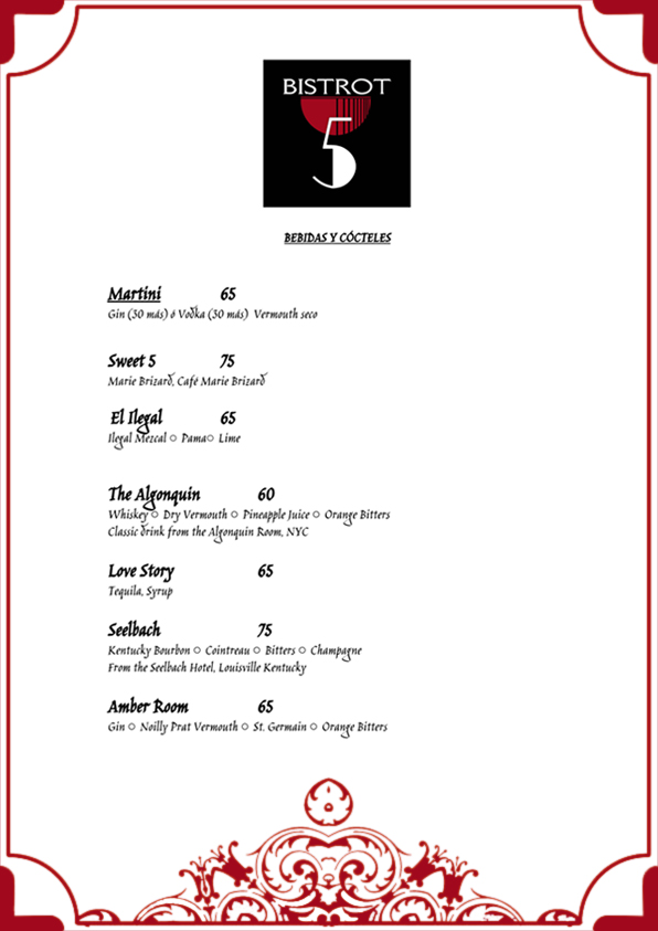 Our Menu Our menu may change in order to provide our guests new and different options. Please contact us to know what the latest menu offers. Food Cocktails Wine List